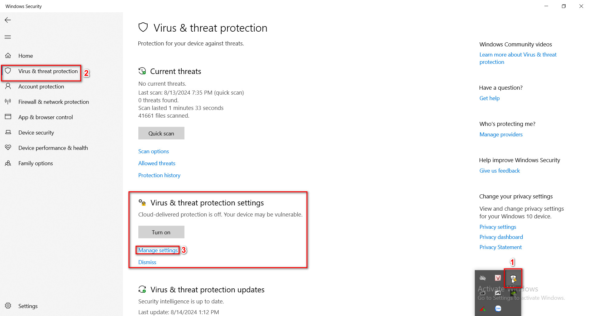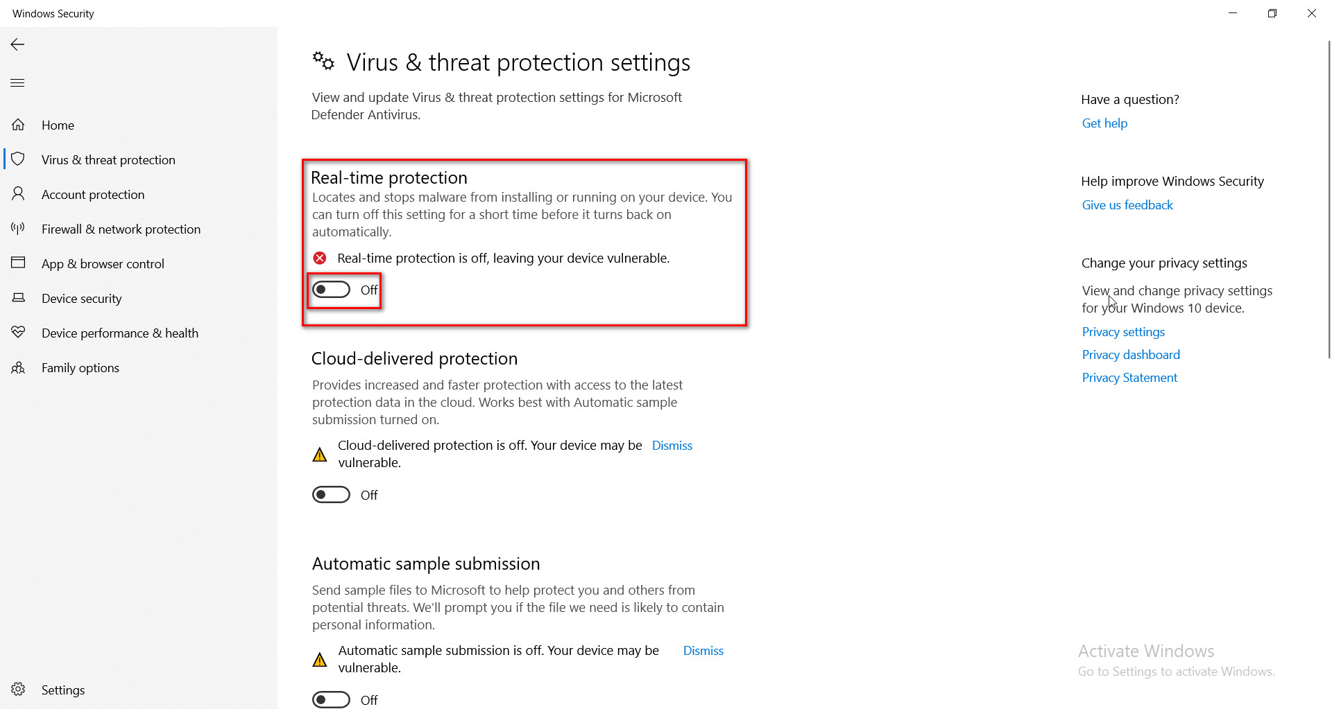 Bước 2: Vào mục Virus & threat protection và Of Real-time protection
