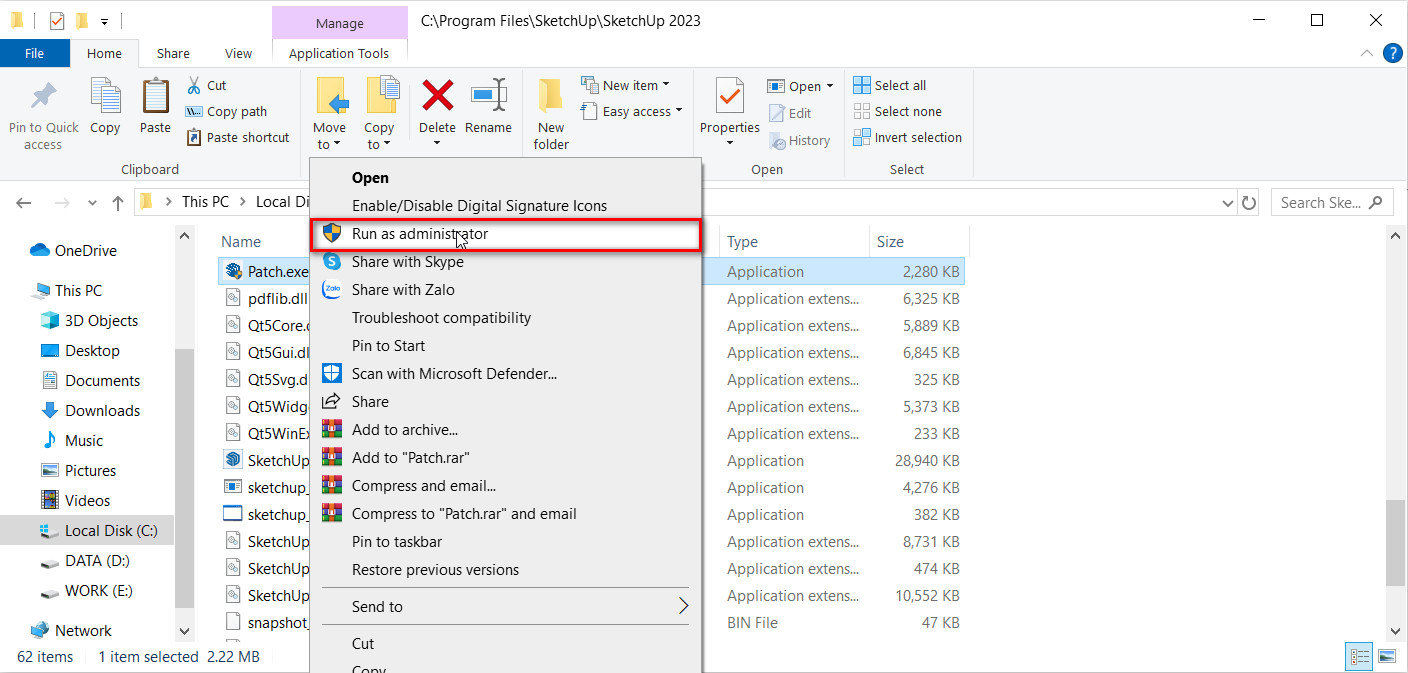 Bước 5: Click phải vào file Path và chọn Run as administrator