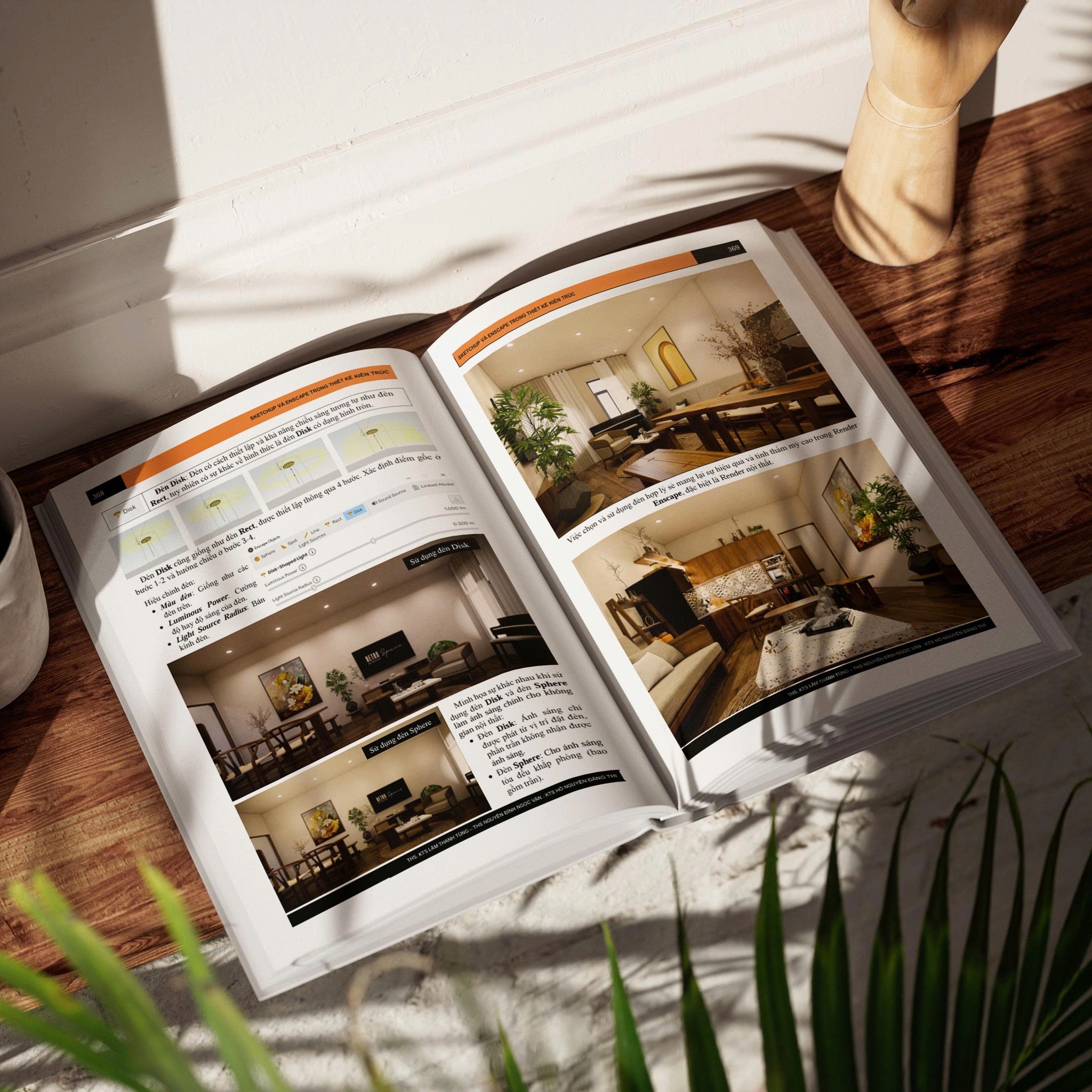 Sách "Sketchup và Enscape trong thiết kế kiến trúc" giá bán lẻ 350 bao gồm: Sách giấy 418 trang, khóa học video và 200gb thư viên